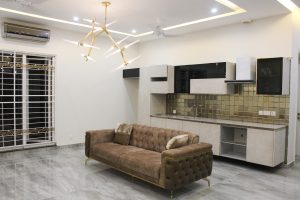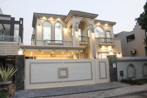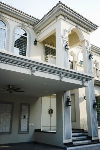 AJ Residence is a premium deluxe 5 Bedroom house with basement, located at a posh location of Bahria Town Lahore. Designed to look semi-modern style with a basement swimming pool adding aesthetics to the structure. Elegant and large widows are designed to ensure good sunlight and ventilation . The building combines classical architecture with contemporary living to create a luxurious and stunning apartment building .